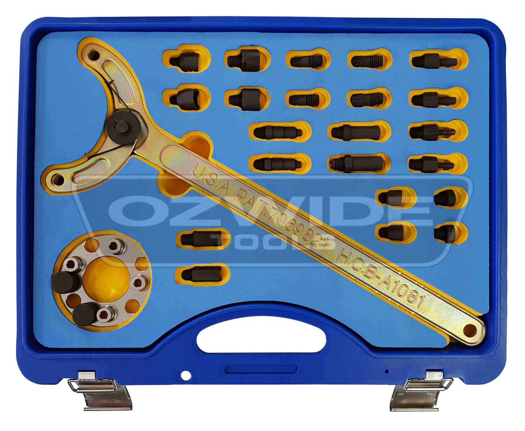 Adjustable jaw opening and multiple adapter fittings to allow for use on a wide variety of vehicles although it is designed for VW / Audi vehicles.