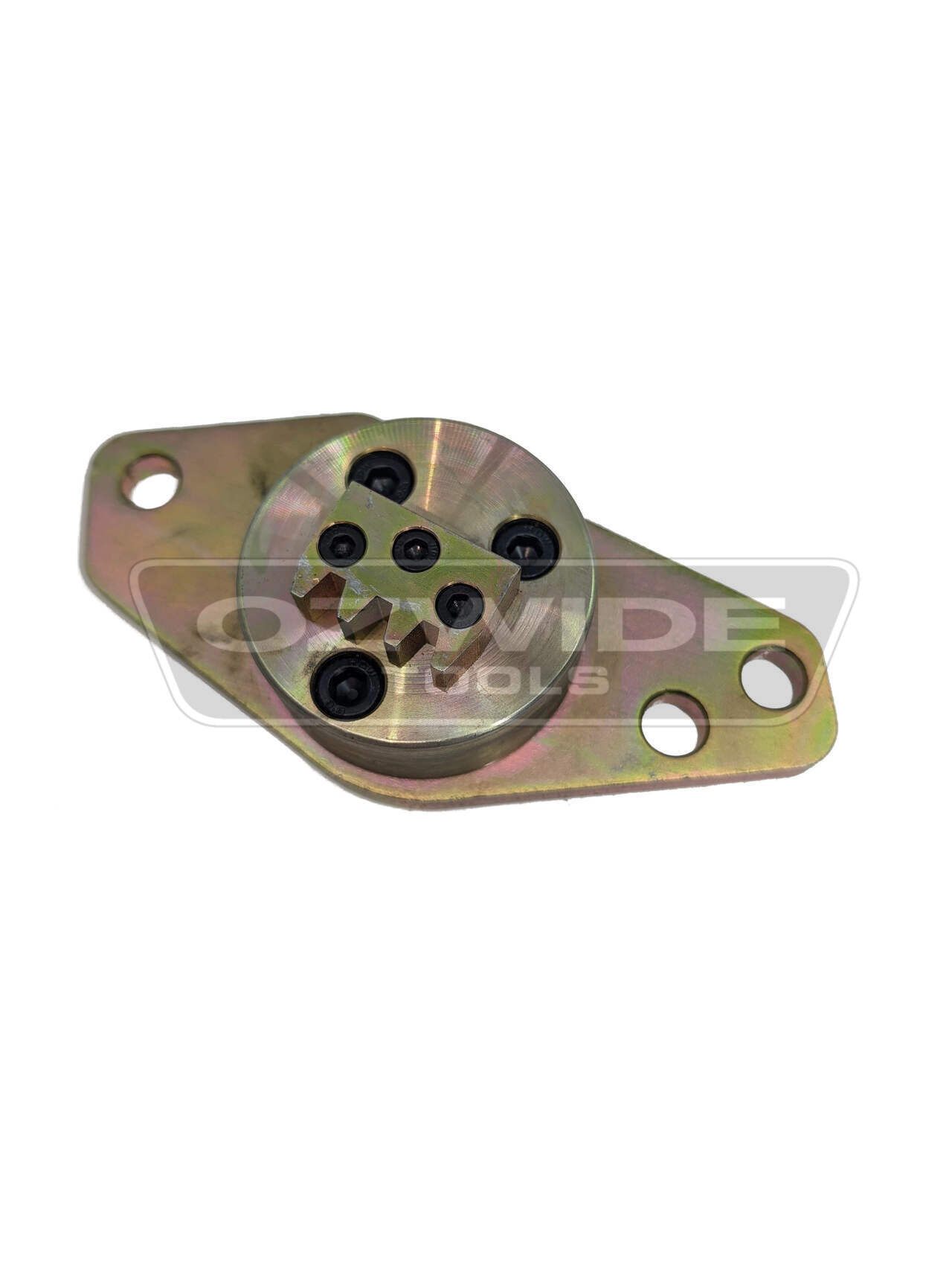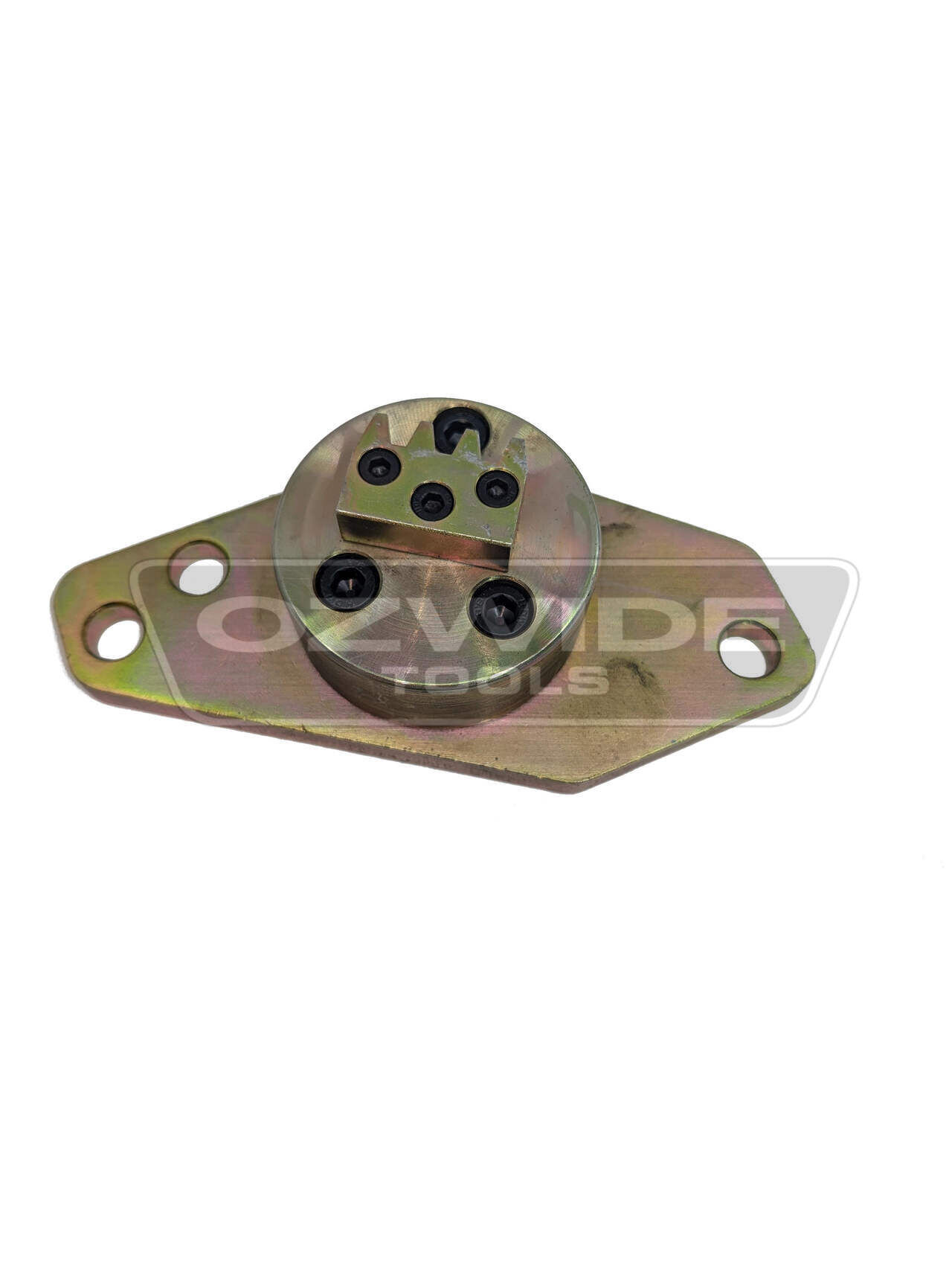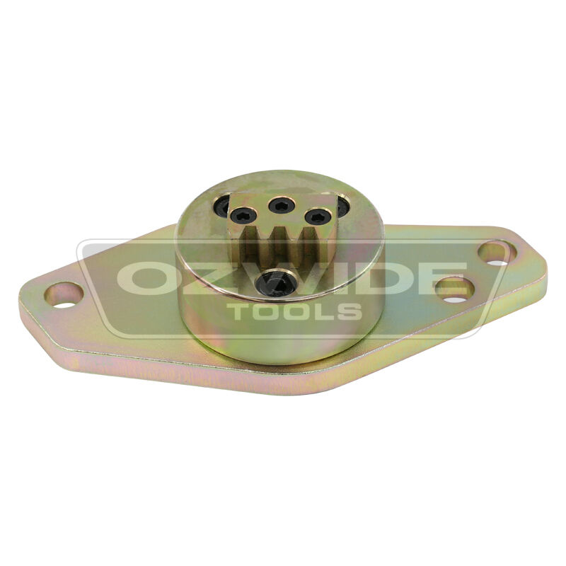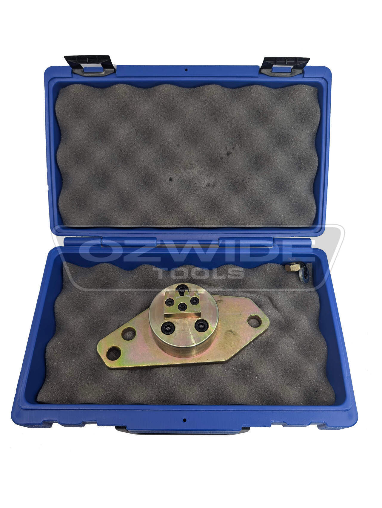 Crankshaft locking tool via the flywheel ring gear or flexi-plate. Bolts in place of the starter motor to lock the engine.