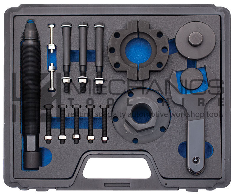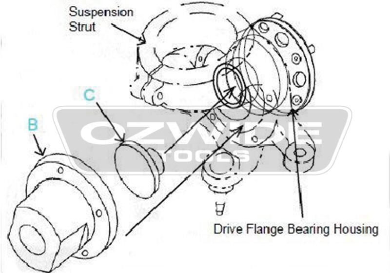 This kit has been developed to remove the front wheel bearing housing from the front drive flange.