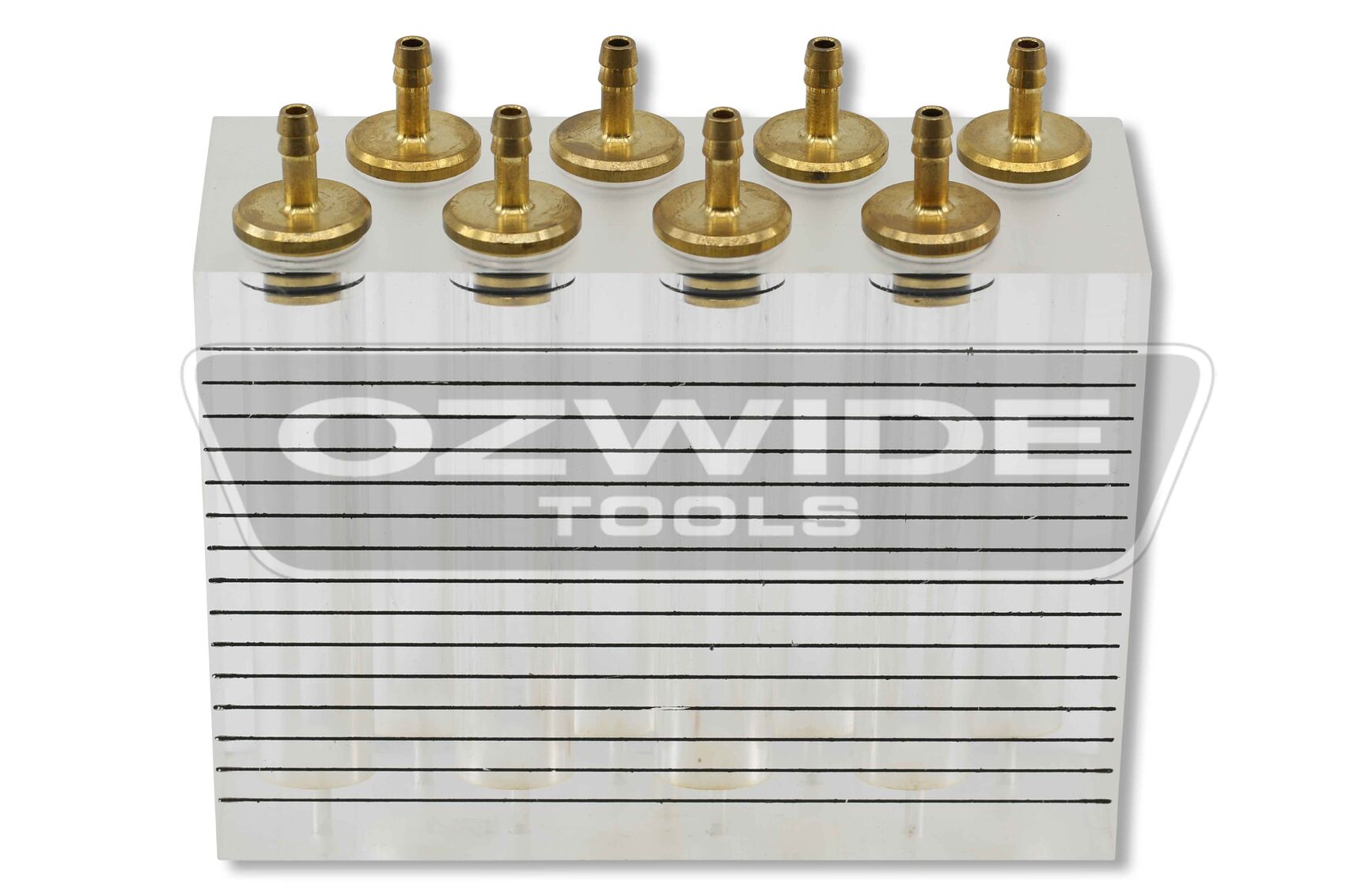 For visually testing injector flow rate via return lines - Allows for simultaneous testing of up to 8 injectors.