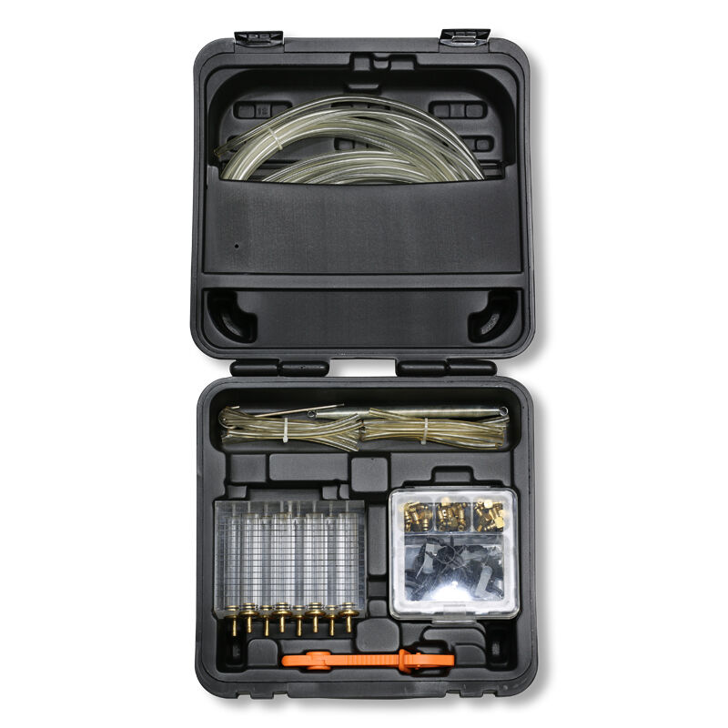 The DM13-0508 common rail diesel injector return flow testing or leak-back test kit is designed to measure the fuel leak- back from each individual injector to identify mechanical issues within the injector.