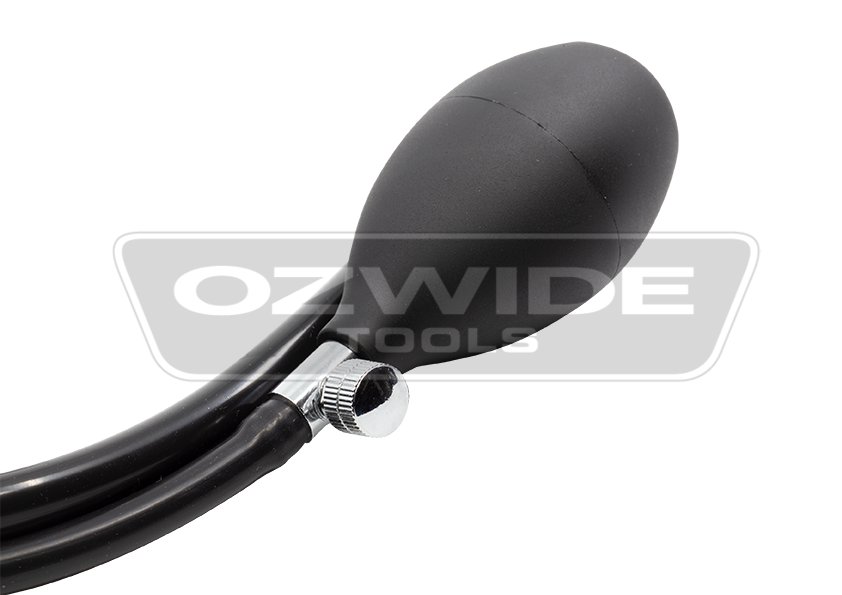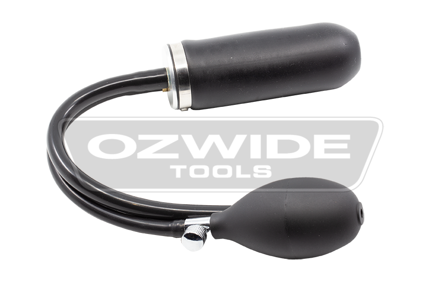Universal air bag inflator used in conjunction with a smoke machine to allow a certain area for testing to be blocked off thus allowing smoke / air pressure to build up quicker which in turn pinpoints leaks.